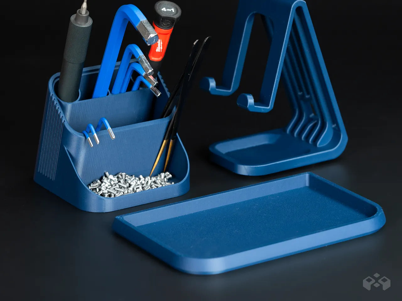This **3D-printed desk organiser with built-in phone holder** keeps your essentials neatly in place while your phone stays upright and within reach. Designed for everyday convenience, it’s perfect for holding pens, small accessories, and desk must-haves—all in one compact footprint.